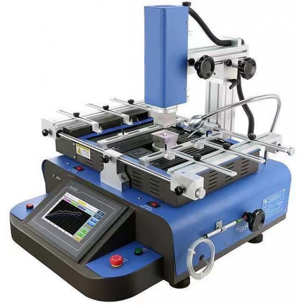 5、选用高精度K型热电偶闭环控制,外置测温接口实现对温度的精密检测.PCB板定位采用V字形槽,灵活方便的可移动式万能夹具对PCB板起到保护作用,防止PCB边缘器件损伤及PCB变形,并能适应各种BGA封装尺寸的返修.